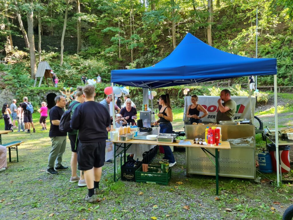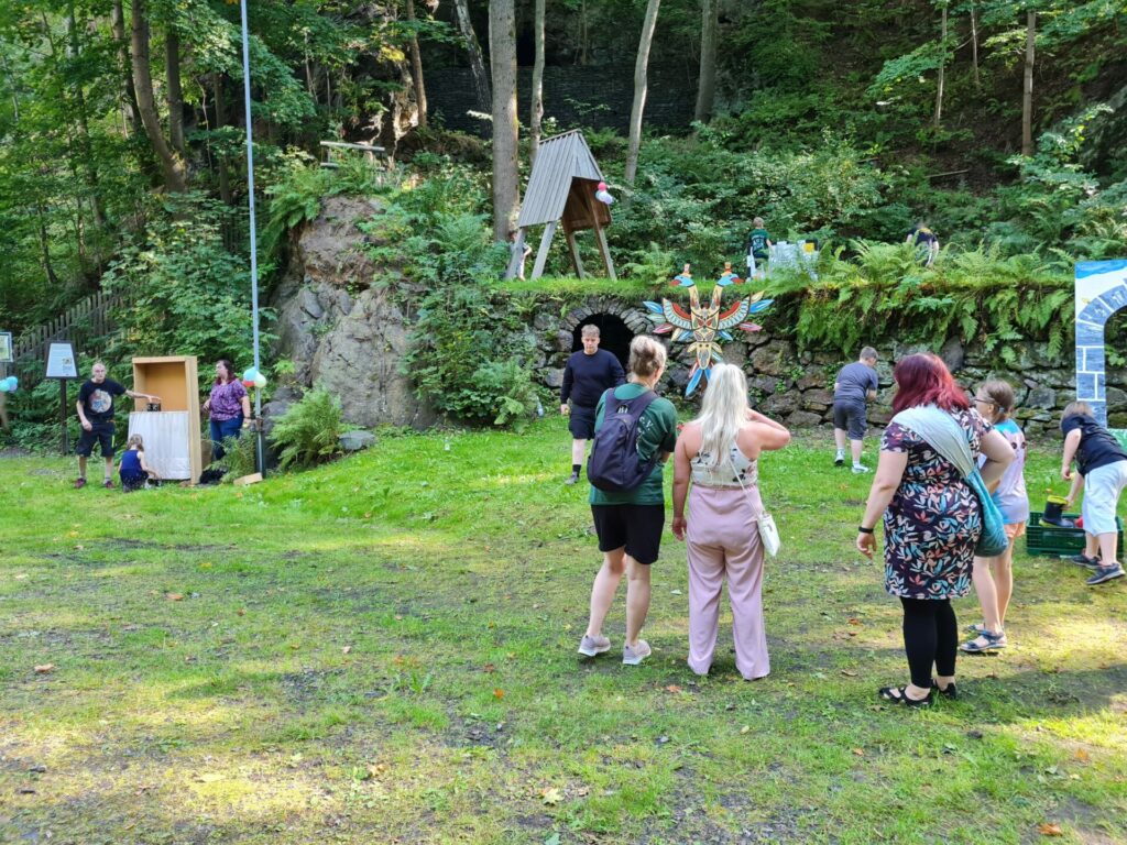 Die Veranstaltung zog nicht nur Einheimische an. Neben den Seiffener Bergkameraden war die Jugendgruppe der Historischen Freiberger Berg- und Hüttenknappschaft vor Ort. Auch Kinder aus dem Kinderheim in Vysoka Pec (Tschechien) folgten der Einladung. Mit dieser Einrichtung unterhält Seiffen, wie auch der Bergklub Lesna, enge Kontakte. Das Fest ist Teil des Interreg-Projekts „NeuStart grenzenloses Erzgebirge“, das unter anderem auch die Sanierung der Binge „Geyerin“ beinhaltet. Unterstützt wurde die Veranstaltung von der Schützengesellschaft 1864 Schwartenberg. Als Abschluss feuerten fünf Kameraden des Vereins drei Böllerschüsse ab, die in der Naturbühne einen gewaltigen Widerhall hatten.